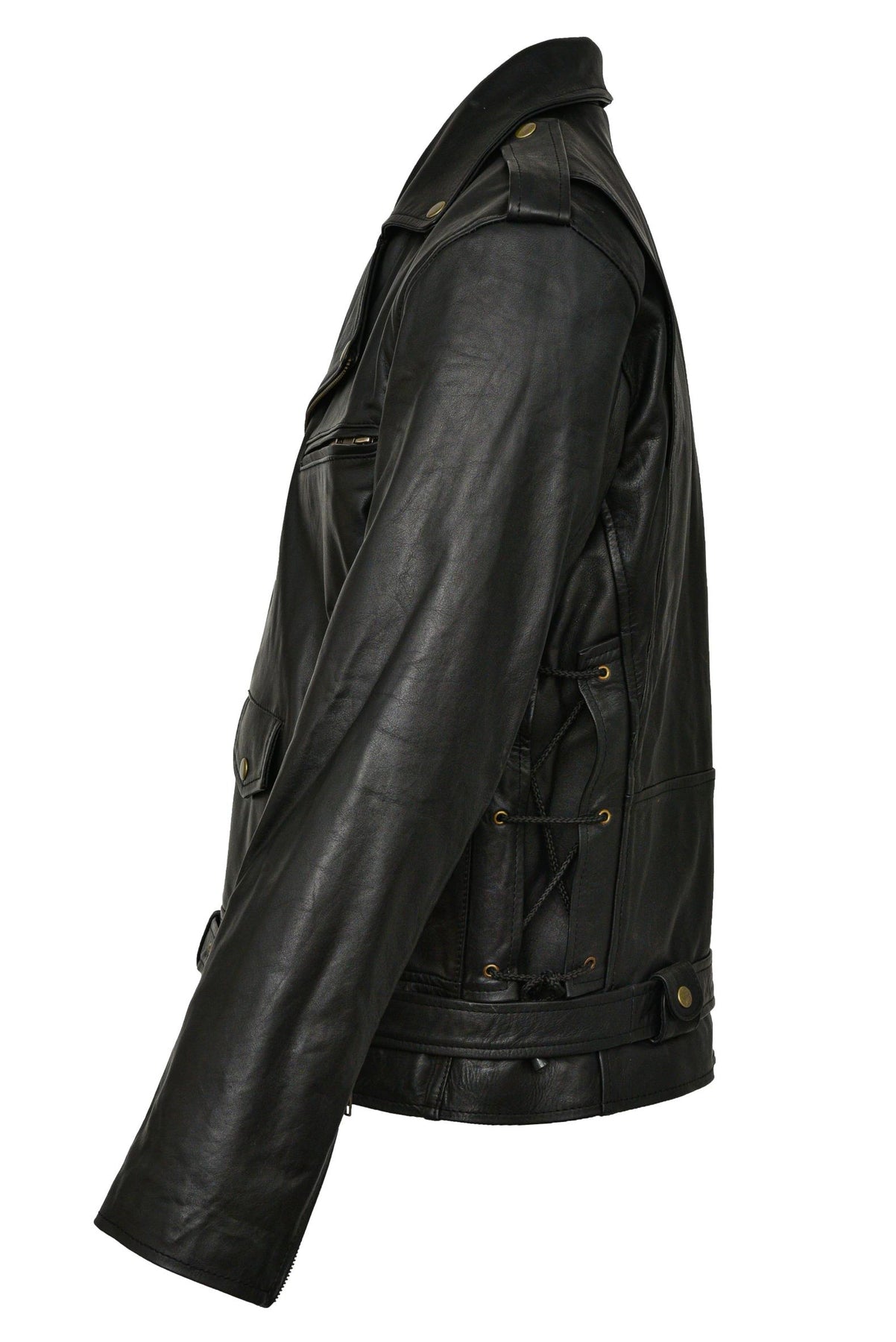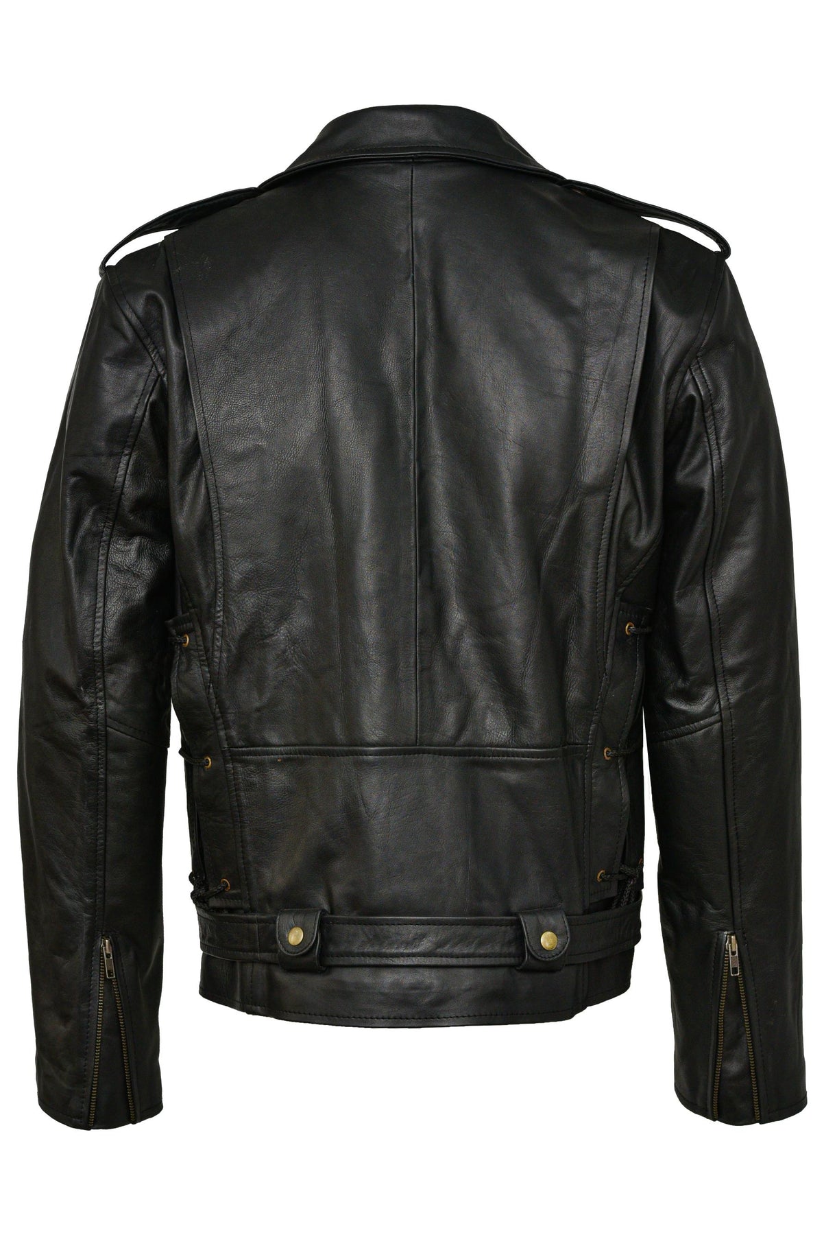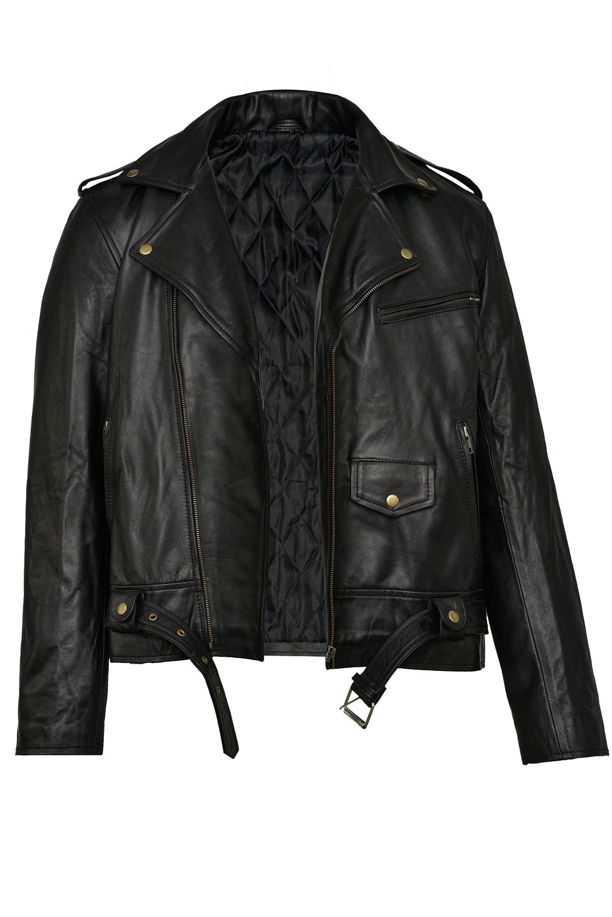 Prime Leather Shop believes that what looks good sells well, hence we spend big bucks on our design team. This biker leather jacket  design is a product of our talented designers who have kept the asymmetry in place, like the classics. The minor tweaks in design are basically the epaulets and belts.