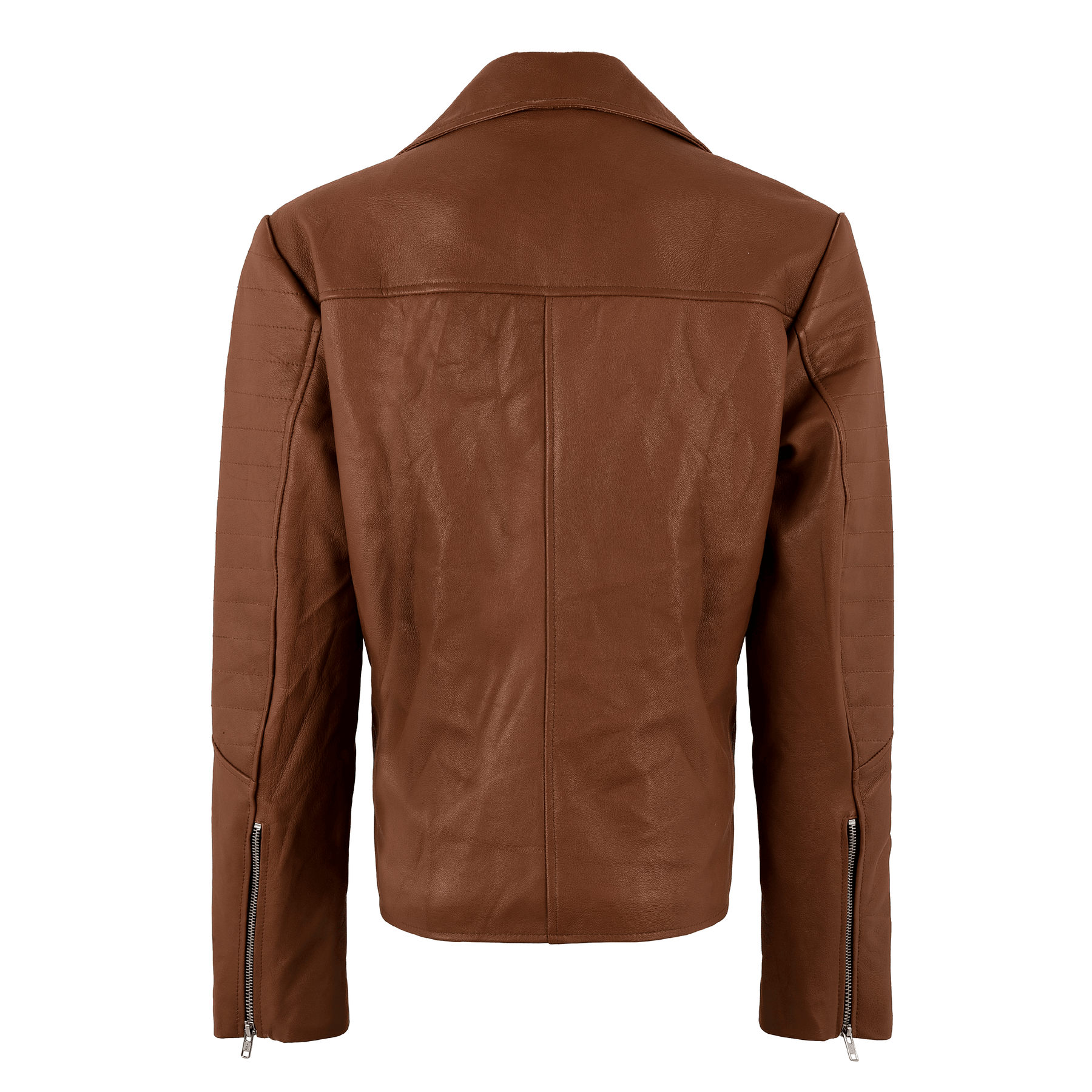 The leather jacket features straight shoulders with prominent embroidered sleeves for extra emphasis on the top. Its long sleeves also feature zippers at the end for detailing purposes. Lastly, the two side pockets with zippers allow safe and spacious storage.