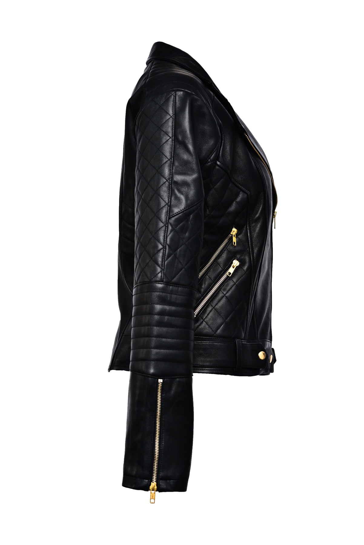 Expertly crafted, the NightRider features a striking golden zipper that enhances its bold look. The lapels are adorned with small golden buttons for a touch of sophistication. Long sleeves with unique patterns add texture, while the golden-zippered side pockets ensure both style and comfort.