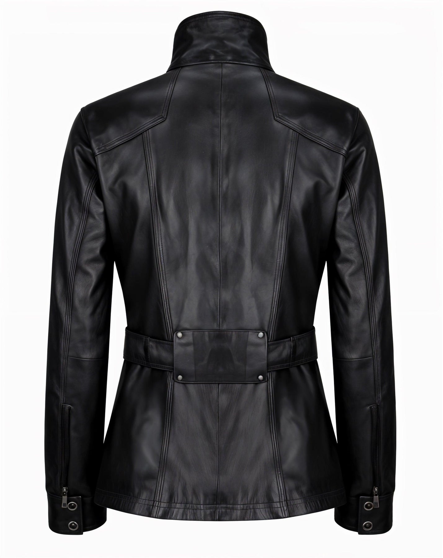As this is crafted for the modern trendsetter, this biker jacket seamlessly blends comfort with runway-ready elegance. Its sleek silver zippered waist belt and precision tailoring offer a polished, streamlined silhouette that speaks volumes about refined taste.