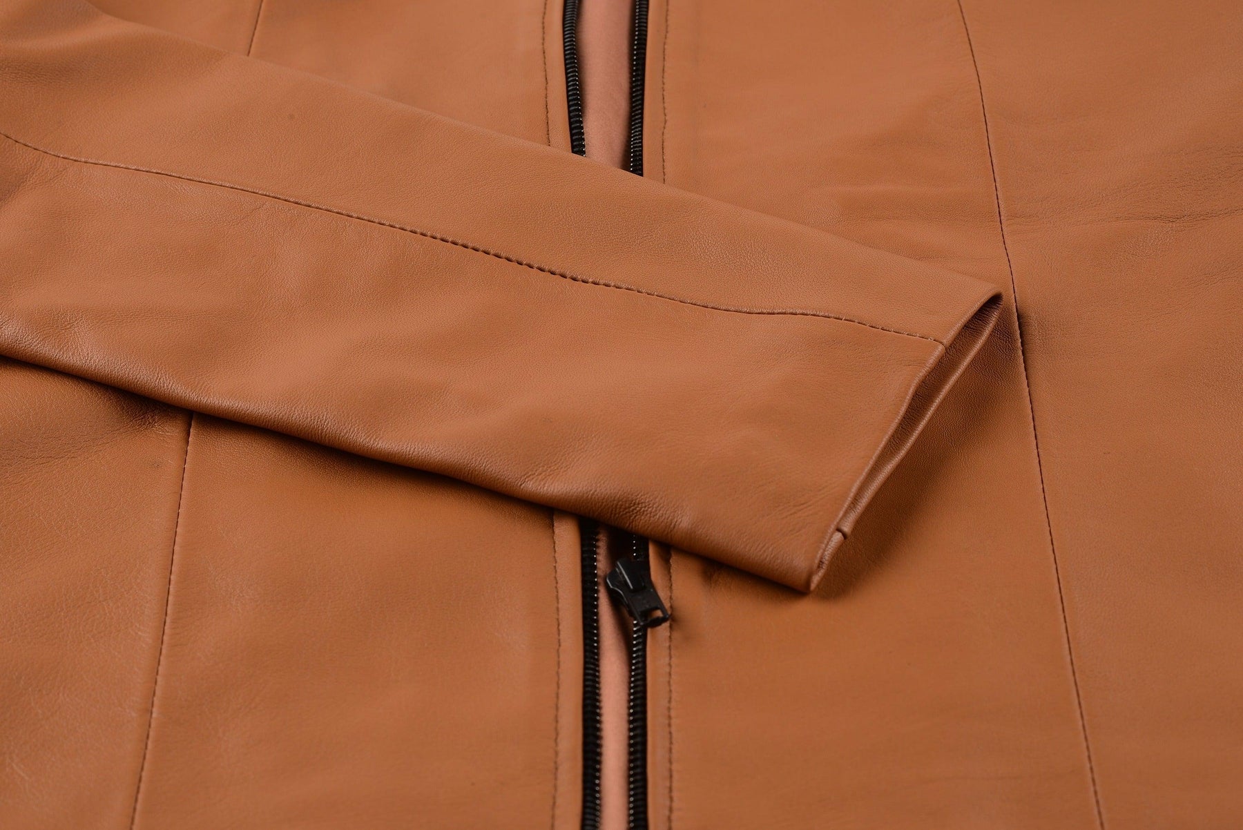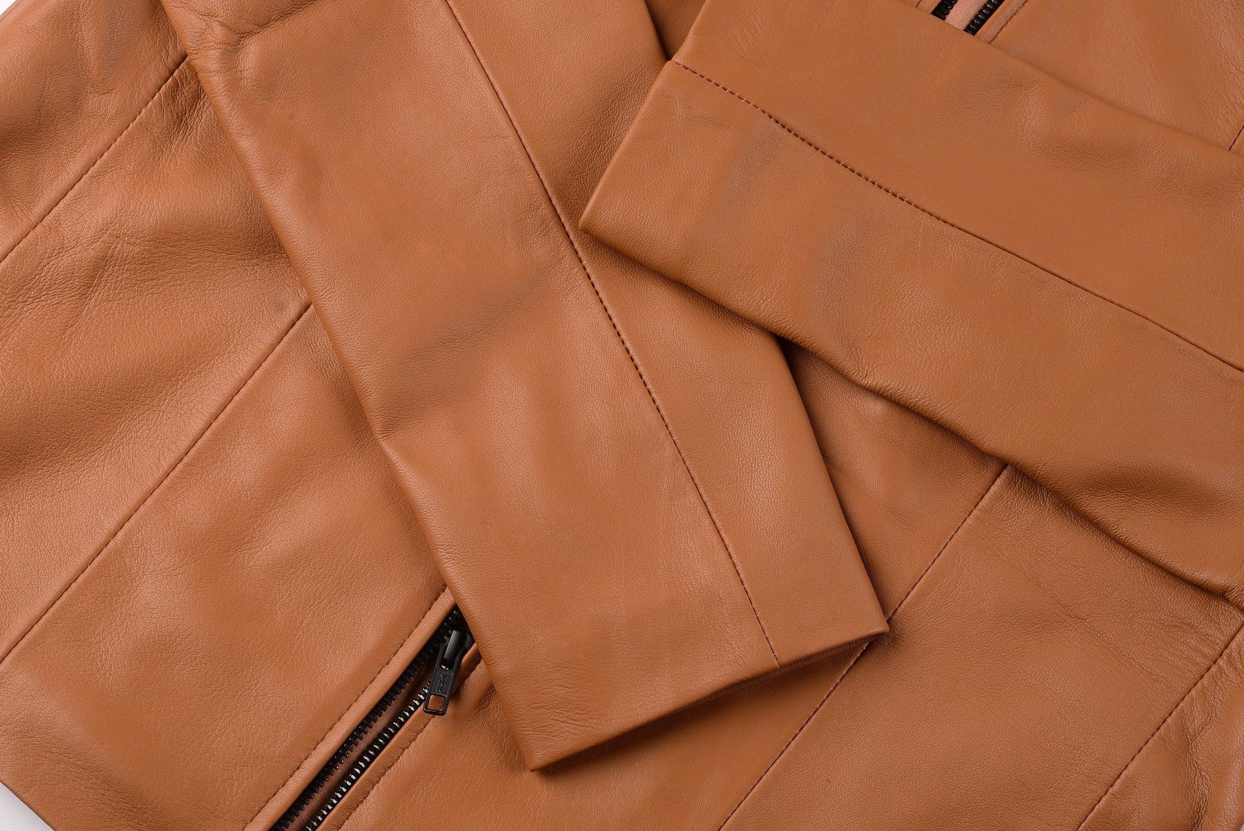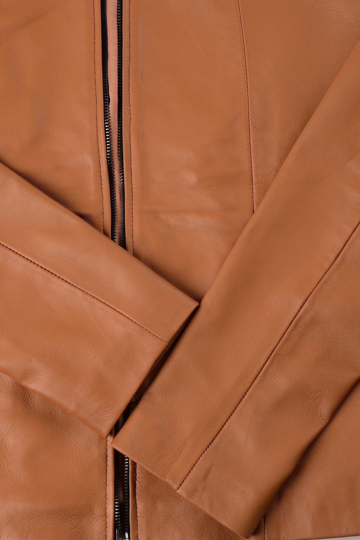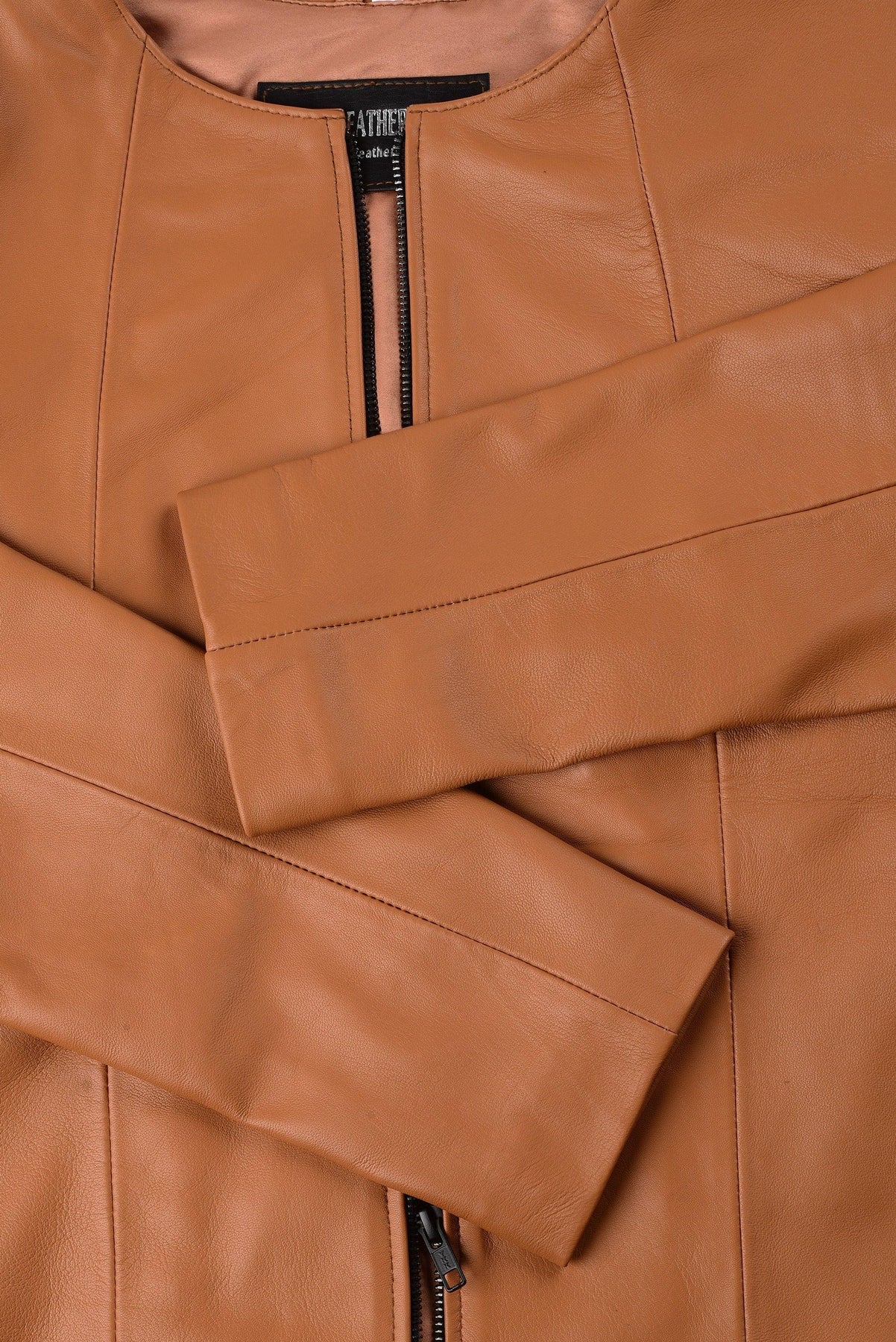 The inside of this gorgeous tan leather jacket women is lined with polyester. Unlike cotton or other fabrics, polyester is wrinkle-resistant, saving your time and effort on steaming. This lining also acts as a protective barrier against the stitches, keeping your skin free from irritation.