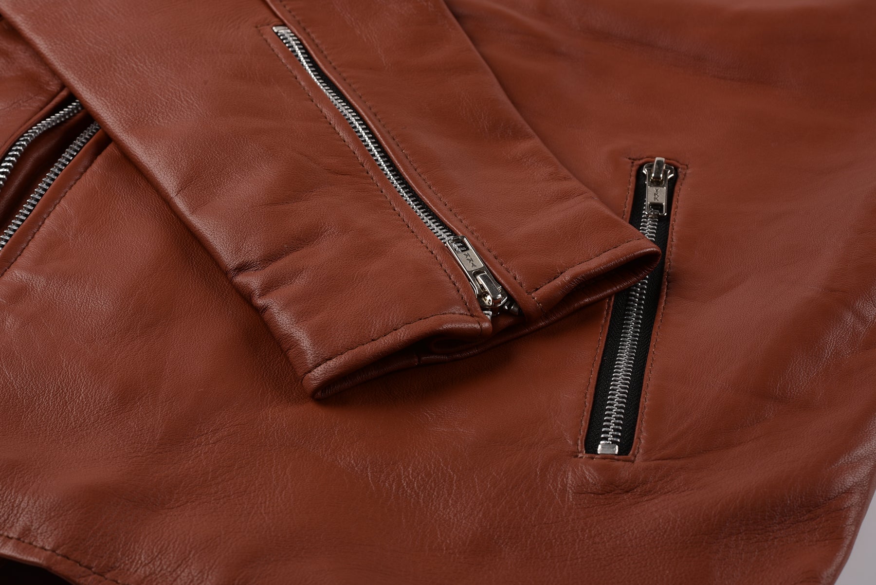 The sleeves and other elements are seamlessly stitched to the bodice, giving the tan leather jacket a neat finish. Similarly, the polyester lining features no thread residue or lumps to cause irritation. It makes the interior super soft, sweat-proof, and ideal for all seasons.